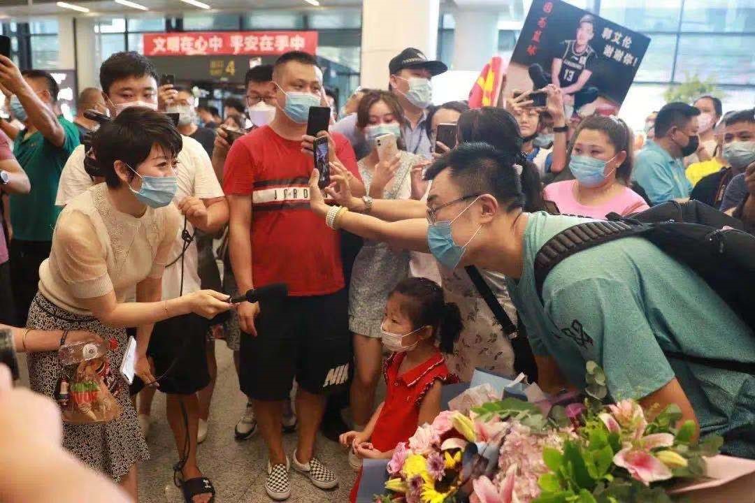 都市频道《新北方》记者和球迷在机场迎接“辽篮”返乡