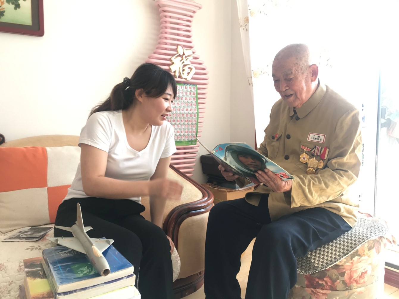 北方频道《大海热线》记者采访抗美援朝志愿军飞行员